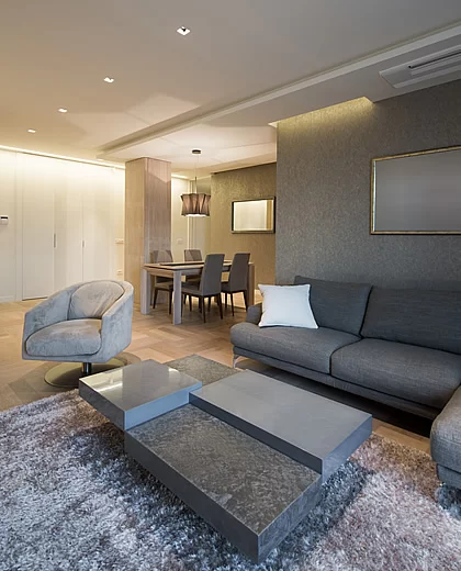 「好きなものに囲まれた暮らしがしたい」がコンセプトの4人家族の贅沢な内装です。面積や奥行きのバランスを考えながらメリハリを付けることで開放的でかつアクセントのある空間作りを目指しました。